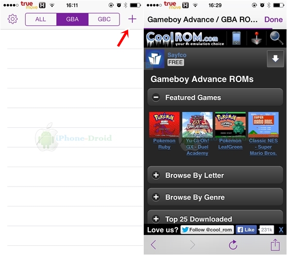 จากนั้นเข้าไปที่เว็บ gba4iosapp.com ด้วย Safari ผ่าน iPhone, iPod, iPad ดาวน์โหลด GBA4iOS ลงมาติดตั้งครับ