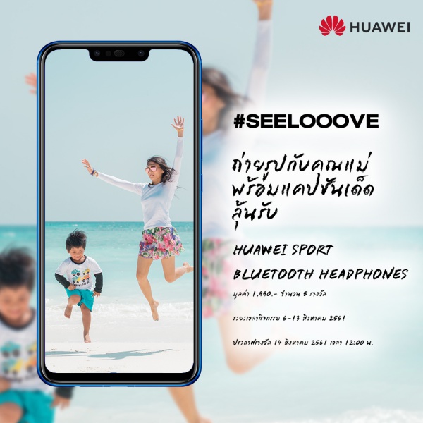หัวเว่ยส่งแคมเปญแทนใจบอกรักแม่ ชวนคู่แม่ลูกมาเซลฟี่สุดคิวท์และเขียนแคปชั่นโดนใจ พร้อมติด #HUAWEI และ#SEELOOOVE บน Facebook หรือ Instagram ลุ้นรับ HUAWEI Sport Bluetooth Headphone มูลค่า 1,990.- จำนวน 5 รางวัล ตั้งแต่วันนี้ถึง 13 สิงหาคมนี้ พร้อมส่งโปรโมชั่นสุดพิเศษฉลองเดือนแห่งวันแม่ ให้คุณลูกเลือกของขวัญสุดล้ำให้คุณแม่ที่รับรองคุณแม่ต้องเลิฟ