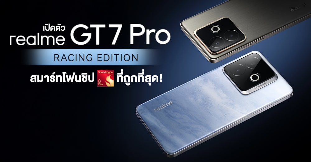 realme เปิดตัว realme GT7 Pro Racing Edition ในประเทศจีนตามนัด มาพร้อมจุดเด่นหลักคือชิปเซ็ต Snapdragon 8 Elite ที่แรงที่สุด แต่เปิดราคาเริ่มต้น 3099 หยวนหรือราว ๆ 14,400 บาทเท่านั้น เป็นสมาร์ทโฟนชิป Snap 8 Elite ที่ถูกที่สุดเลยก็ว่าได้!