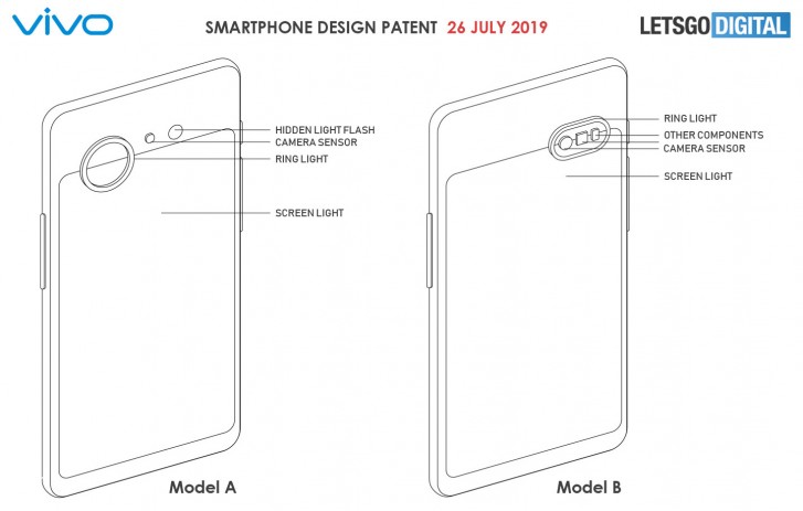LetsGoDigital ได้พบสิทธิบัตรใหม่ของ Vivo ที่ขอเข้าจดสิทธิบัตรในช่วงเดือนกันยายน 2018 กับ WIPO โดยในสิทธิบัตรนี้มีภาพสเก็ตทั้งหมด 37 ภาพ จากดีไซน์สมาร์ทโฟน 2 แบบ