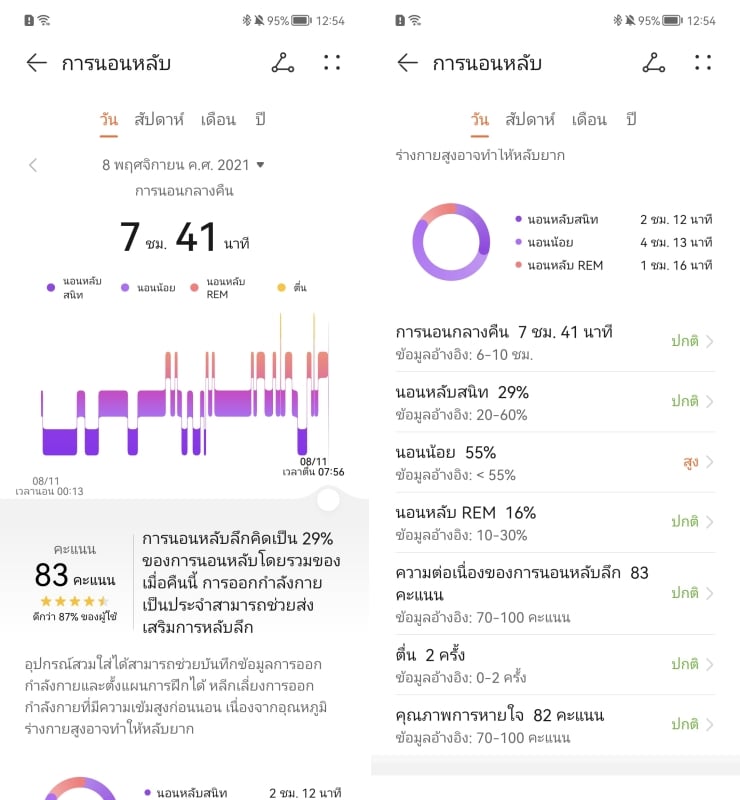 ใครที่ตื่นนอนมาไม่สดชื่นก็สามารถใช้ HUAWEI WATCH GT 3 Series เป็นผู้ช่วยในเรื่องวัดคุณภาพการนอนหลับได้ เพียงแค่เราต้องใส่นอนไปพร้อมกัน ซึ่งในรุ่นนี้มาพร้อมเทคโนโลยี HUAWEI TruSleep 2.0 เพื่อตรวจวัดแต่ละช่วงการนอน (Sleep Stage) ไม่ว่าจะเป็นอัตราการเต้นของหัวใจแบบเรียลไทม์, วัดการหายใจขณะนอนหลับ และประเมินคุณภาพการนอนหลับ โดยผลสรุปการนอนจะอยู่ในแอป HUAWEI Health ที่จะมีการบอกคะแนนการนอนหลับ, ช่วงระยะการนอน 4 ช่วง ได้แก่ หลับสนิท, นอนน้อย, หลับฝัน (REM) และตื่น