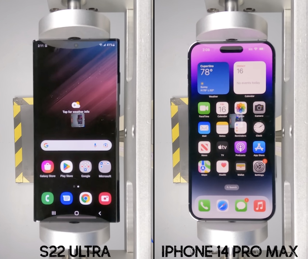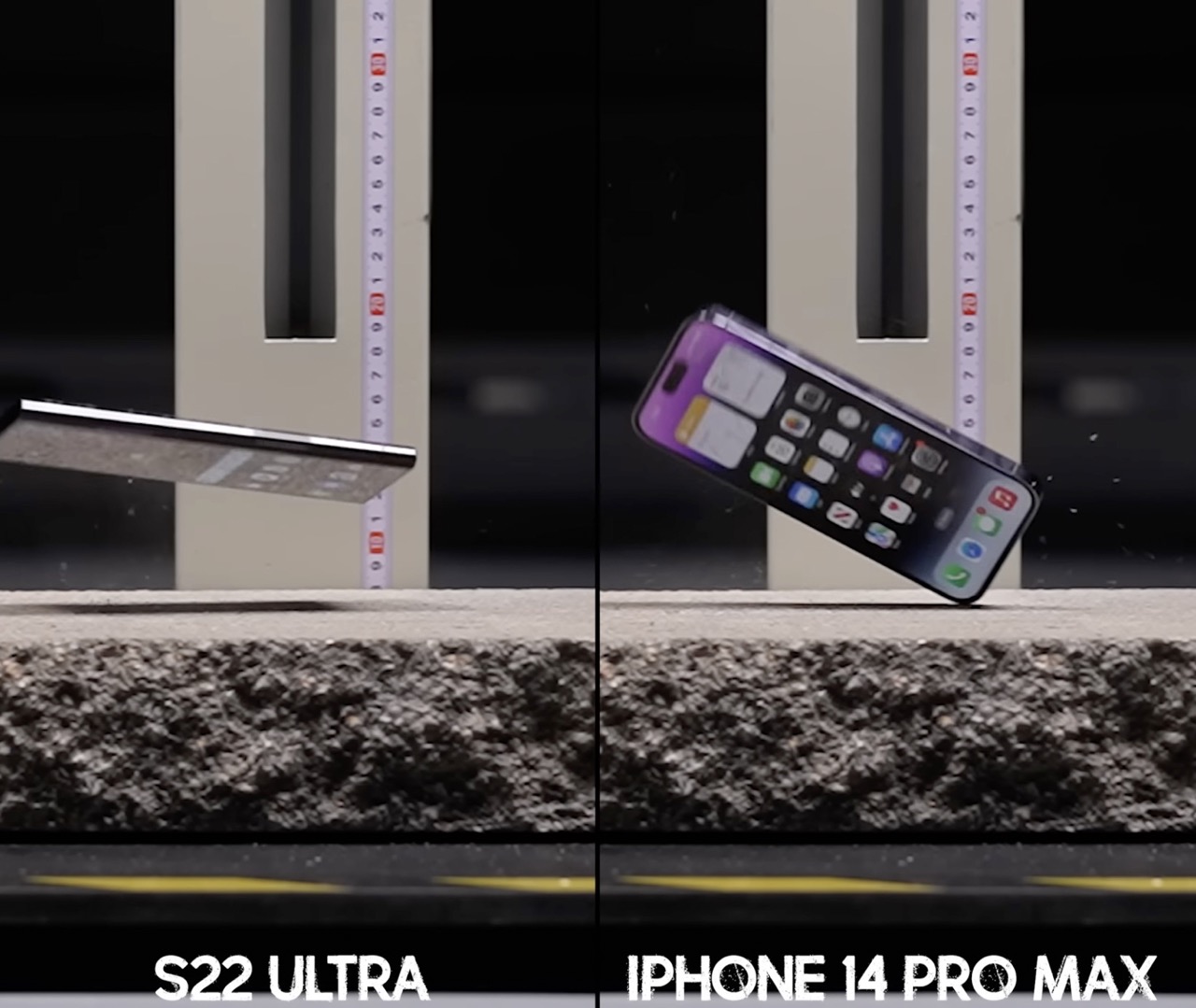 และปิดท้ายที่การทิ้งด้านหน้าลงเต็ม ๆ ทั้งคู่เจออาการกระจกหน้าจอแตกเหมือนกัน แต่รอบนี้เหมือน S22 Ultra จะรุนแรงกว่า แตกไปทั่วหน้าจอในขณะที่ iPhone 14 Pro Max นั้นเป็นมุมขวาบนที่แตกค่อนข้างชัดครับ