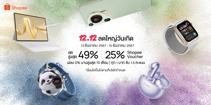 เตรียมพบกับโปรโมชันสุดพิเศษส่งท้ายปีที่ 12.12 Shopee Birthday Sale ตั้งแต่วันที่ 12 ธันวาคม 2567 – 14 ธันวาคม 2567 นี้ พาคุณช้อปแกดเจ็ตและสินค้าสุดล้ำจากหัวเว่ยที่ทั้งคุ้มค่าและโจทย์สำหรับการเป็นของขวัญปีใหม่ให้คนพิเศษ หรือจะเลือกเป็นของขวัญให้ตัวเองก็ยังได้! ให้คุณช้อปแบบสุดคุ้มด้วยข้อเสนอสุดพิเศษ ดังนี้ :
