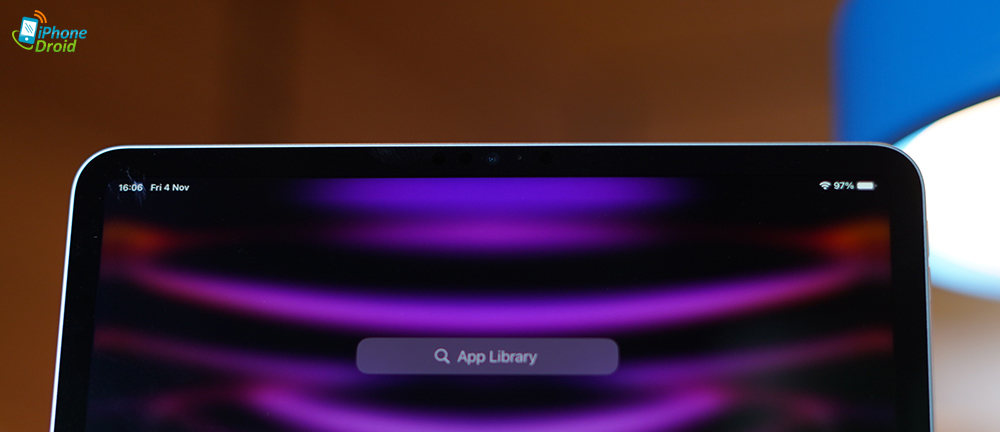 บน iPad Pro M2 ยังคงวางตำแหน่งกล้องหน้าพร้อมเซ็นเซอร์ Face ID ไว้ที่ด้านบนเหมือนเดิม ตรงนี้เราก็แอบขัดใจนิดหน่อยเพราะบน iPad รุ่นที่ 10 นั้นมีการย้ายตำแหน่งไปไว้แนวนอนแล้ว แต่บนรุ่น Pro ก็ยังวางไว้แบบแนวตั้งเหมือนเดิม ใช้งาน FaceTime หรือ VDO Call ต่าง ๆ ก็คงเจอปัญหาสายตาไม่มองตรงกลางเหมือนเดิม