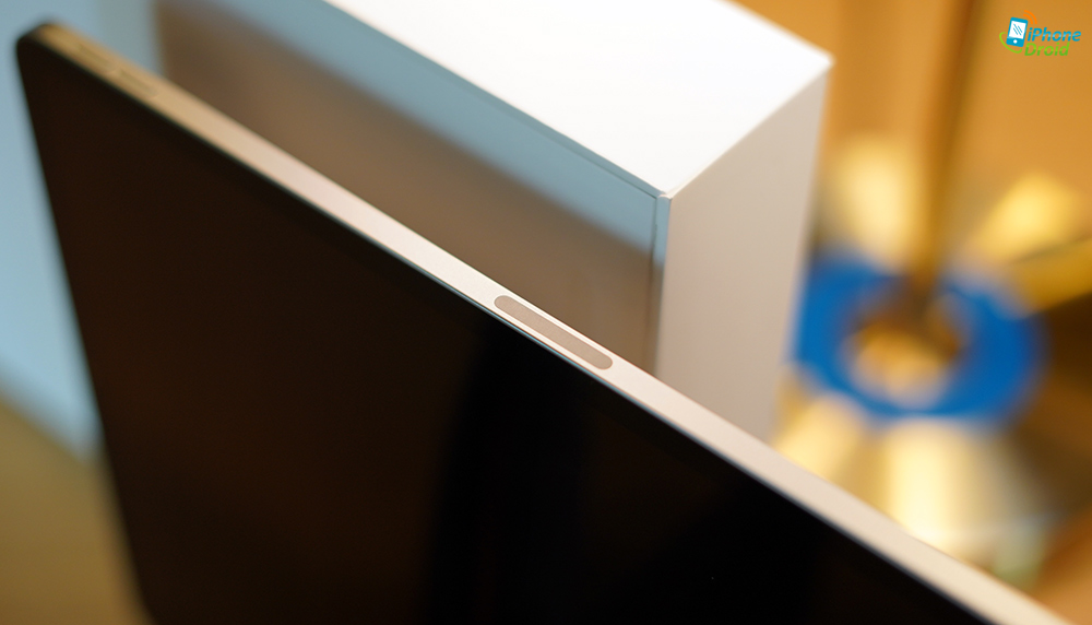 รอบ ๆ ตัวเครื่องก็ยังใช้ดีไซน์แบบเหลี่ยมเหมือนเดิม ที่ด้านบนมีปุ่ม Power และด้านขวามือมีปุ่มเพิ่ม-ลดเสียงครับ