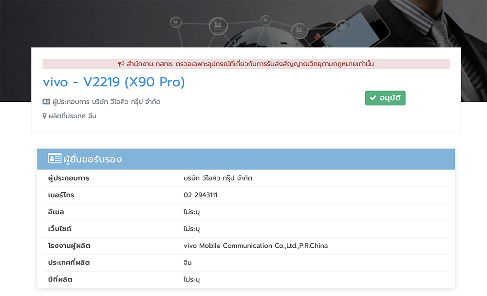 vivo X90 Series เปิดตัวทางการในจีนไปเมื่อปลายปีที่ผ่านมา และก็คาดว่าจะเปิดตัวแบบ Global ในต้นปีนี้ด้วย ก่อนหนานี้เราได้ทราบว่า vivo X90 รุ่นเริ่มต้นนั้นผ่านการรับรองจาก กสทช. ไปแล้ว ล่าสุด vivo X90 Pro รุ่นพี่ก็ผ่าน กสทช. ตามมาเช่นกัน!