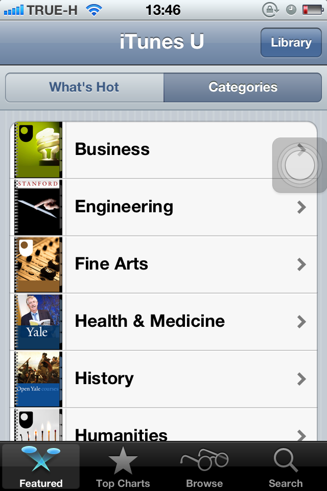 ก่อนอื่นเรามาโหลดที่ App store กันก่อนโดยไปที่ iTunes U ครับ ซึ่งแอพนี้โหลดได้ฟรี :lol: