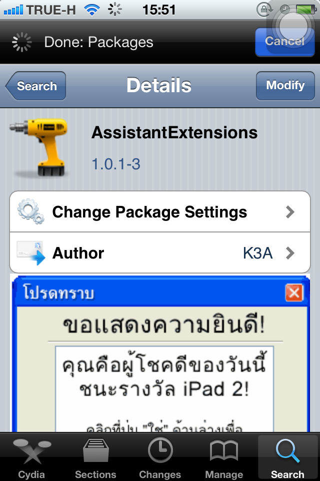 ก่อนอื่นติดตั้ง AssistantExtensions ได้ที่ cydia ครับ