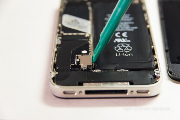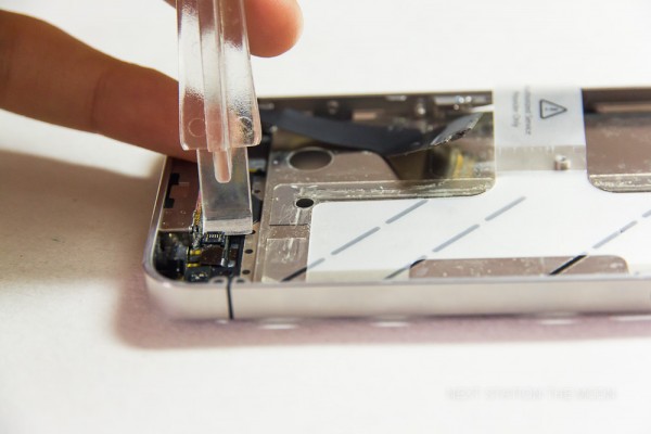 เสร็จแล้วครับ ลำโพง กับไมโครโฟน ตอนนี้เราแกะออกมาสำเร็จแล้ว เห็นไอ้เจ้าสายไฟ ที่มีปลายหัวกลมๆนั่นไหมครับ นั่นคือสายอากาศครับ ซึ่งมันไปสำผัสกับขอบของ iPhone นั่นเอง ลำพังแล้วตัวมันติดอยู่กับบอร์ดครับ อย่าลืมใส่กลับคืนก็แล้วกันครับ ไม่งั้นสัญญาณไม่เข้าครับ