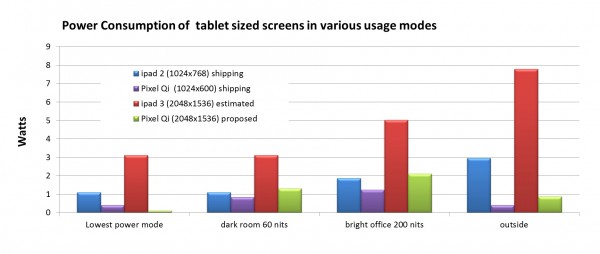 Pixel Qi เผยข้อมูลให้เราตกใจกันเล่นอีกแล้ว กับหน่าจอที่พวกเขากำลังสร้างขึ้นมาใหม่ ด้วยความละเอียด 1048×1536 ที่เขาอ้างว่าดีกว่า และประหยัดแบตเตอรี่กว่า iPad รุ่นใหม่ ถึง 100 เท่า (ตามรูป)
