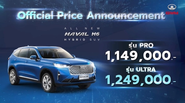 - สี้นสุดการรอคอย เกรท วอลล์ มอเตอร์ ประกาศราคา All New HAVAL H6 Hybrid SUV รุ่น PRO ที่ 1,149,000 บาท และรุ่น ULTRA ที่ 1,249,000 บาท โดยจะเป็นราคาแบบ “ONE PRICE” ราคาเดียวกันในทุกๆช่องทางการขาย