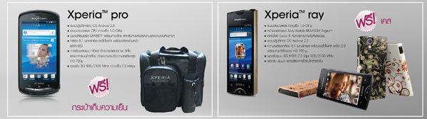 โปรโมชั่น ของรุ่น XPERIA pro กับ XPERIA ray เฉพาะลูกค้าที่ซื้อมือถือใน