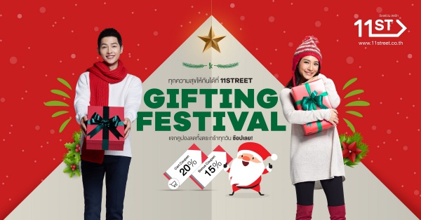 ในเดือนธันวาคมนี้ 11street มอบแคมเปญใหญ่ส่งท้ายปีเพื่อขอบคุณลูกค้าทุกท่านที่ให้ความไว้วางใจและเข้ามาช้อปปิ้งกับ 11street กับแคมเปญ “Gifting Festival” มอบความสุขคืนแก่นักช้อปทุกวันด้วยคูปองและส่วนลดมากมายรวมมูลค่ากว่า 45 ล้านบาท รวมคูปองส่วนลดกว่า 130,000 ใบ พร้อมของขวัญสุดเซอร์ไพรส์แทนคำขอบคุณมากมาย ทั้งบัตรแรบบิทรูปซงจุงกิ กล้อง GoPro และอื่นๆ ตั้งแต่ 1 – 31 ธันวาคม 2560