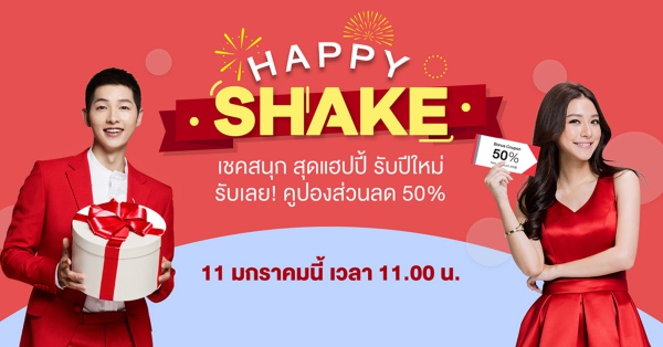 • Happy Shake: เพียงหยิบมือถือขึ้นมาเชคให้ได้ตามที่กำหนด รับเลยส่วนลด 50% โดยเกมจะเริ่มเวลา 11:00 น. ของวันที่ 11 ม.ค. 61 วันเดียวเท่านั้น