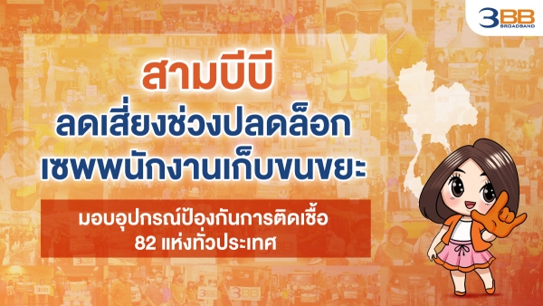 ถึงแม้ว่าการตรวจพบผู้ติดเชื้ออยู่ในอัตราที่ลดลงอย่างต่อเนื่อง และรัฐบาลได้มีมาตรการคลายล็อกดาวน์และผ่อนปรนให้หลายๆ ธุรกิจกลับมาเปิดให้บริการได้อีกครั้ง ซึ่งอาจจะทำให้เกิดการแพร่ระบาดของเชื้อในระลอกที่ 2 ได้ ดังนั้นการเฝ้าระวังและป้องกันจึงเป็นเรื่องสำคัญ 3BB เห็นว่ายังมีคนอีกกลุ่มหนึ่งที่ทำงานอยู่บนความเสี่ยงตลอดเวลา ได้แก่พนักงานเก็บขนขยะ เพราะต้องทำงานอยู่กับขยะติดเชื้อและขยะอันตราย เช่นหน้ากากอนามัยใช้แล้วทิ้งอย่างไม่ถูกวิธี รวมถึงขยะพลาสติกและขยะอื่นๆ ซึ่งมีจำนวนมากในแต่ละวัน 3BB จึงได้ร่วมกับสำนักงานเขตและองค์กรปกครองส่วนท้องถิ่น (อปท.) เพื่อมอบอุปกรณ์ป้องกันการติดเชื้อ ได้แก่ ถุงมือยาง หน้ากากอนามัย แอลกอฮอล์ ให้กับพนักงานเก็บขนขยะในเขตกรุงเทพมหานครและจังหวัดต่างๆทั่วประเทศ จำนวน 82 แห่ง เพื่อนำไปสวมใส่ขณะปฏิบัติหน้าที่ เป็นการป้องกันอันตรายจากเชื้อโรคและลดความเสี่ยงการสัมผัสเชื้อไวรัสโควิด-19 และทำงานได้อย่างปลอดภัยมากขึ้น