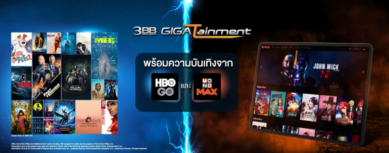 ถึงแม้สถานการณ์โควิดกำลังเริ่มดีขึ้น แต่พฤติกรรมและการใช้ชีวิตประจำวันของผู้บริโภคปัจจุบันยังคงอยู่บนโลกออนไลน์เกือบตลอดเวลา ทั้งการติดตามข่าวสาร รับชมความบันเทิง และมีแนวโน้มว่าจะเพิ่มขึ้นเรื่อยๆ แอป 3BB จึงได้เพิ่มแพลตฟอร์มความบันเทิงระดับเวิลด์คลาสอย่าง HBO GO ซึ่งเป็นเอ็นเตอร์เทนเม้นท์แพลตฟอร์มที่เป็นที่นิยม และได้รับการยอมรับจากผู้ชมทั่วโลกยกให้เป็นหนึ่งในด้านคอนเทนต์บันเทิง ที่มีทั้งหนัง ซีรีส์ สารคดี รวมถึง MONOMAX ให้ลูกค้า 3BB GIGATainment สามารถรับเลือกรับชมได้แบบง่ายๆ สะดวกรวดเร็วจากแอป 3BB ที่เดียว