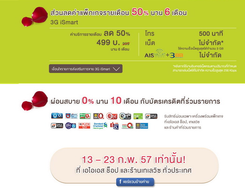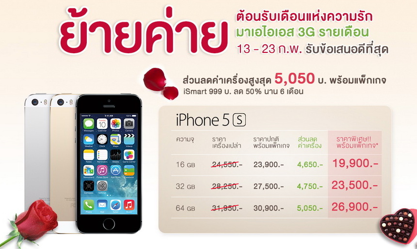 รายละเอียดเพิ่มเติม http://www.ais.co.th/3g-postpaid/iphone-valentine/