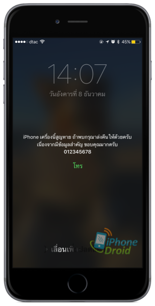 จากนั้นจะมีข้อความนี้ที่พิมพ์ไป พร้อมกับเบอร์โทรศัพท์ เพื่อให้ผู้ที่เจอเครื่องของเราติดต่อกลับได้ครับ