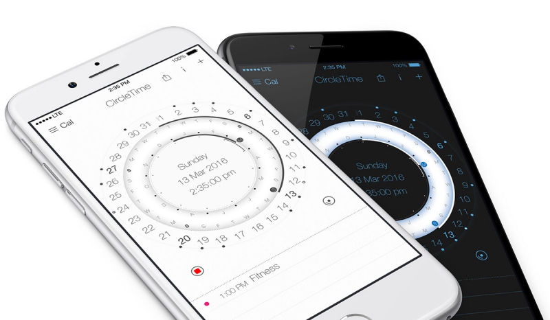 Complete calendar มีอินเตอร์เฟซที่ไม่เหมือนปฏิทินทั่วไป เพราะมีการแสดงผลแบบวงกลม หมุนดูวันที่ได้เหมือนเข็มนาฬิกา พร้อมแสดงเวลาได้สวยงามเพราะว่าตัว UI เป็นแบบวงกลม เปลี่ยนสีพื้นหลังเป็นสีดำเมื่อเป็นเวลากลางคืน และเปลี่ยนเป็นสีขาวเมื่อเป็นเวลากลางวัน พร้อมแสดงรายการอีเว้นท์กิจกรรมต่าง ๆ ได้ด้วยการซิงค์กับ iCloud หรือซิงมาจากปฏิทินอื่น ๆ