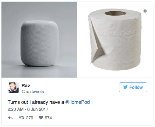 นอกเหนือจากฟีเจอร์ที่ Apple ได้นำเสนอให้เห็นที่มีอยู่ในตัว HomePod แล้ว ดีไซน์ตัวลำโพงเป็นอีกหนึ่งอย่างที่หลายคนเห็นแล้วต่างก็มองว่าเหมือนสิ่งนั้นสิ่งนี้ ซึ่งก็เป็นประจำทุกครั้งที่เมื่อมีการเปิดตัวผลิตภัณฑ์ใหม่จาก Apple ก็มักจะโดนแซวกันอยู่แล้ว มาดูกันว่ารอบนี้จะฮาได้ขนาดไหน