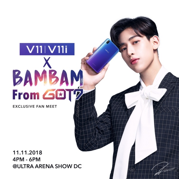 Vivo จัดกิจกรรมให้กับแฟนๆ และพรีเซ็นเตอร์ Vivo V11/11i คนล่าสุดกับ BAMBAM GOT7 ในกิจกรรม “ Vivo V11 x BAMBAM GOT7 Exclusive Fan Meet ” และให้คุณได้ร่วมลุ้นเป็นผู้โชคดีรับบัตรใกล้ชิด BAMBAM GOT7 ในงาน “Vivo V11 x BAMBAM GOT7 Exclusive Fan Meet” ในวันอาทิตย์ที่ 11 พฤศจิกายน 2561 @ULTRA ARENA SHOW DC เวลา 16.00 – 18.00 น. โดยทางเราจะมีให้คุณเลือกเล่นกิจกรรมหลากหลายช่องทางโดยผู้โชคดีที่ได้รางวัลจะมีสิทธิ์ได้รางวัลเพียง 1 สิทธิ์เท่านั้น ดังต่อไปนี้.
