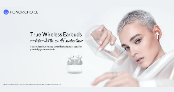 ออเนอร์ แบรนด์สมาร์ทโฟน ประกาศเปิดตัวและพร้อมวางจำหน่ายหูฟังเอียร์บัดไร้สาย HONOR CHOICE True Wireless Earbuds โดยถือเป็นผลิตภัณฑ์ตัวแรกในพอร์ต HONOR CHOICE ของออเนอร์ ที่มีวางจำหน่ายในประเทศไทย โดย HONOR CHOICE เป็นหนึ่งในพอร์ตผลิตภัณฑ์สมาร์ทไลฟ์ ที่ออเนอร์สร้างสรรค์ขึ้นโดยร่วมมือกับผู้ผลิตชั้นนำในแวดวงอุตสาหกรรม สำหรับ HONOR CHOICE True Wireless Earbuds ที่เปิดตัวครั้งนี้ มาพร้อมกับเทคโนโลยีส่งสัญญาณเสียงแยกข้างซ้ายขวา (binaural synchronous transmission) ช่วยลดความล่าช้าของสัญญาณเสียง มีลำโพงวัสดุผสมขนาด 7 มม. และแบตเตอรี่คุณภาพเยี่ยมที่ใช้ได้นานสูงสุด 24 ชั่วโมง เพื่อการเชื่อมต่อที่สมบูรณ์แบบยาวนานต่อเนื่องตลอดทั้งวัน พร้อมจำหน่ายให้ผู้บริโภคชาวไทยแล้ววันนี้ที่ Lazada Store