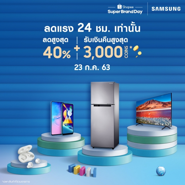 ซัมซุง อิเลคโทรนิคส์ ผู้นำด้านนวัตกรรมและเทคโนโลยีระดับโลก ประกาศผนึกกำลัง ช้อปปี้ (Shopee) ผู้นำแพลทฟอร์มอีคอมเมิร์ซในภูมิภาคเอเชียตะวันออกเฉียงใต้และไต้หวัน ส่งแคมเปญ “Samsung x Shopee Super Brand Day” ต่อเนื่องเป็นปีที่ 2 มอบส่วนลดจุใจสูงสุดถึง 40% พร้อมรับเงินคืนสูงสุดอีกกว่า 3,000 coins พร้อมดีลสุดพิเศษอีกมากมาย เฉพาะวันที่ 23 กรกฎาคม 2563 วันเดียวเท่านั้น