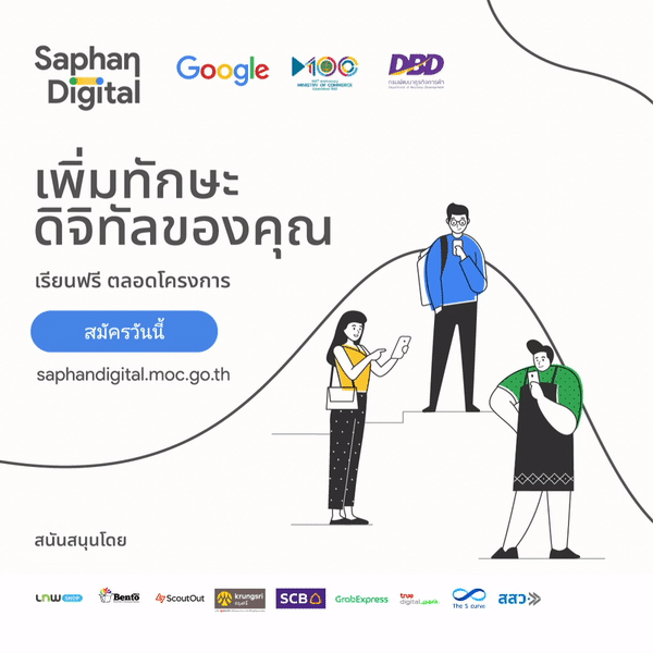 Google ประเทศไทย ได้เปิดตัวโครงการใหม่ของ Grow with Google ที่มีชื่อว่า “Saphan Digital” ภายใต้ความร่วมมือกับกระทรวงพาณิชย์และพันธมิตรองค์กรธุรกิจชั้นนำจากอุตสาหกรรมต่างๆ ที่มุ่งให้การสนับสนุนแก่ผู้ประกอบการ บุคคลทั่วไป และองค์กรที่ไม่แสวงหาผลกำไร ให้เข้าถึงเครื่องมือดิจิทัลและเรียนรู้ทักษะดิจิทัลจากผู้เชี่ยวชาญเพื่อนำไปต่อยอดธุรกิจให้เติบโตอย่างมีประสิทธิภาพ รวมทั้งเปิดโอกาสให้บุคคลที่มีคุณสมบัติเหมาะสมจับคู่กับผู้ประกอบการและองค์กรที่ไม่แสวงหาผลกำไรเพื่อรับประสบการณ์จริงจากการใช้เครื่องมือดิจิทัลเพื่อทำงานกับองค์กรต่างๆ
