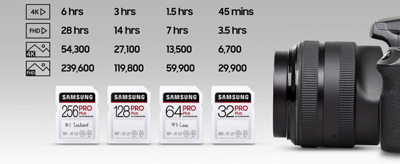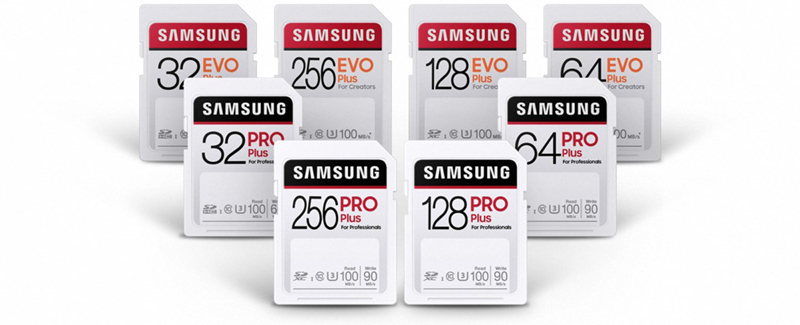 การ์ด PRO Plus และ EVO Plus มีความจุให้เลือกตั้งแต่ 32GB, 64GB, 128GB และ 256GB พร้อมใช้ UHS-I และเป็น U3 Class เกือบทั้งหมด ยกเว้น 32GB และ 64GB EVO Plus ที่เป็น U1