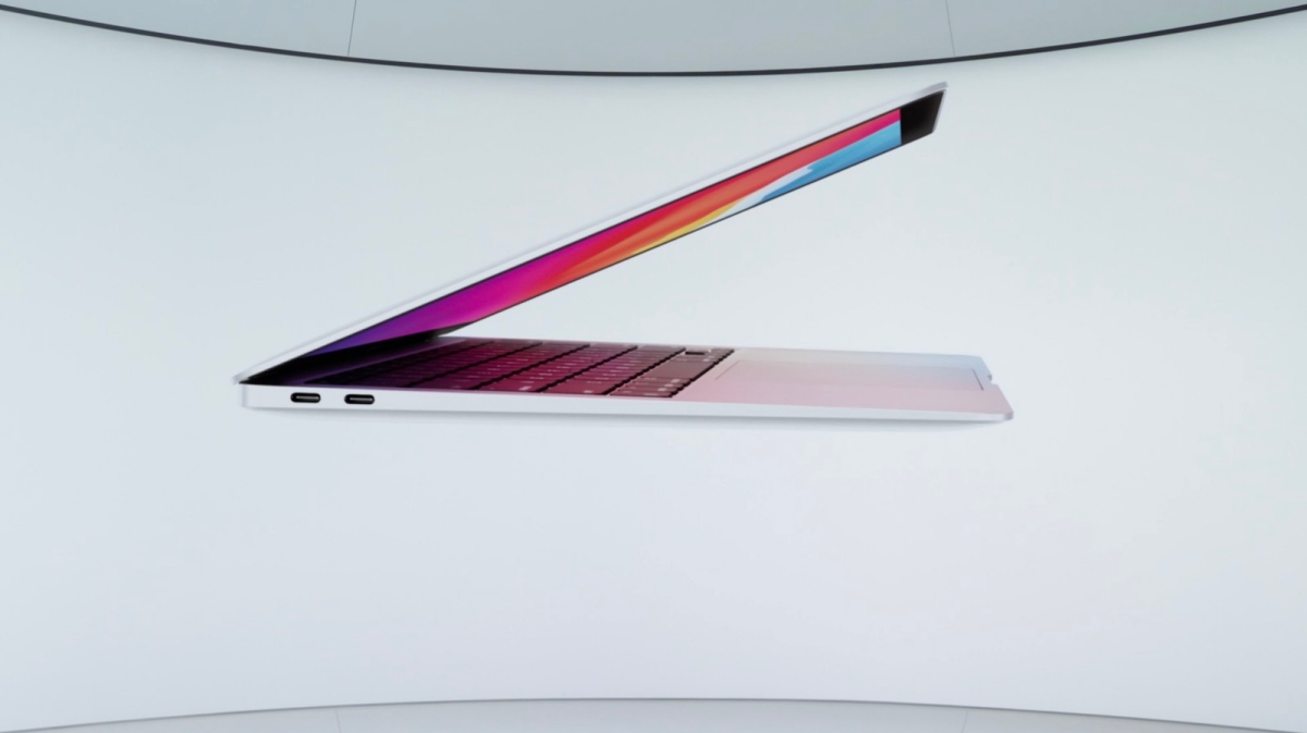 MacBook Air รุ่นชิป M1 มาพร้อมกับดีไซน์ที่บางและเบามากๆ เพราะการใช้หน่วยประมวลผล M1 โดยมีความเร็วของ CPU มากขึ้นถึง 3.5 เท่า, GPU เร็วกว่าเดิมถึง 5 เท่า แถมเร็วกว่าโน๊ตบุ๊คที่ขายที่ดีสุดในฝั่ง Windows ถึง 3 เท่า