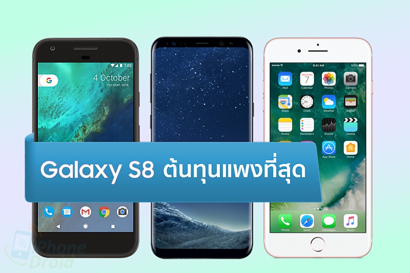 จากภาพแผนภูมิแสดงระดับราคาจาก Statista อ้างอิงข้อมูลมาจาก IHS ซึ่งเป็นบริษัทเกี่ยวกับการวิจัยเทคโนโลยีในประเทศจีน เปรียบเทียบให้เห็นกันชัดเจนว่าต้นทุนของสมาร์ทโฟนไฮเอนด์จากแบรนด์ต่าง ๆ แต่ต่างกันอย่างไรบ้าง โดย Samsung Galaxy S8 นั้นมีต้นทุนราว 307.5 ดอลลาร์หรือประมาณ 10,500 บาท สูงขั้นจากเดิม 36 ดอลลาร์เมื่อเทียบกับ Galaxy S7 edge และสูงกว่า 22 ดอลลาร์เมื่อเทียบกับ Google Pixel ในขณะที่ต้นทุนของ iPhone 7 ถูกกว่า Galaxy S8 ถึง 83 ดอลลาร์