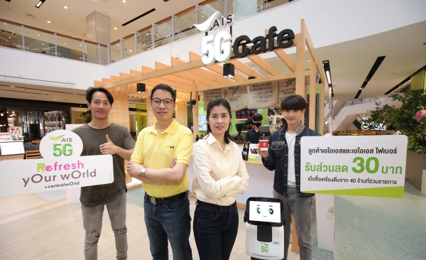 เอไอเอส ตอกย้ำผู้นำด้าน Loyalty Program ที่พร้อมดูแลลูกค้าทุกเจเนอเรชันให้อุ่นใจในทุกช่วงเวลา จับมือ เซ็นทรัลพัฒนา หรือ CPN เอาใจคอกาแฟและของหวาน สานต่อความสำเร็จแคมเปญ AIS 5G Refresh yOur wOrld @centralwOrld พาเหรดร้านเครื่องดื่มและขนมหวานชั้นนำในศูนย์การค้าเซ็นทรัลเวิลด์ที่หลายคนชื่นชอบกว่า 40 ร้านค้า อาทิ Casa Lapin, Fire Tiger, Tsujiri, Coffeelism, KOI Thé, The Alley และอื่นๆ อีกมากมาย มารีเฟรชความสดชื่นให้คนไทย ต้อนรับการกลับมาเดินห้างได้อย่างอุ่นใจ พร้อมเดินหน้าเปิดประสบการณ์ให้คนไทยได้สัมผัสไลฟ์สไตล์ยุค 5G ในหลากหลายมิติ นำเทคโนโลยี 5G และหุ่นยนต์ 5G อัจฉริยะ “MAX” พนักงานเสิร์ฟสุดไฮเทค ซึ่งพัฒนาโดยทีมวิจัย AIS Robotic Lab มาทำหน้าที่ จัดการคิว เสิร์ฟเครื่องดื่ม และสอบถามความพึงพอใจของลูกค้าที่ร้าน AIS 5G Café ป๊อปอัพคาเฟ่สุดล้ำของคนรักกาแฟ ที่มีร้านดังหมุนเวียนมาเติมความสดชื่น เพื่อยกระดับการให้บริการที่ทันสมัย ลดเลี่ยงการสัมผัส เสริมความปลอดภัยและสุขอนามัย ตามมาตรการ Social Distancing ตอบสนองไลฟ์สไตล์การช้อปปิ้งวิถีใหม่ พร้อมพาคนไทยก้าวสู่โลก 5G ที่เหนือขีดจำกัดไปอีกขั้น จัดเต็มสิทธิพิเศษเอาใจลูกค้าเอไอเอส และเอไอเอส ไฟเบอร์ ที่แวะมารีเฟรชความสดชื่นที่ร้าน AIS 5G Café ให้ได้ฟิน 2 ต่อ