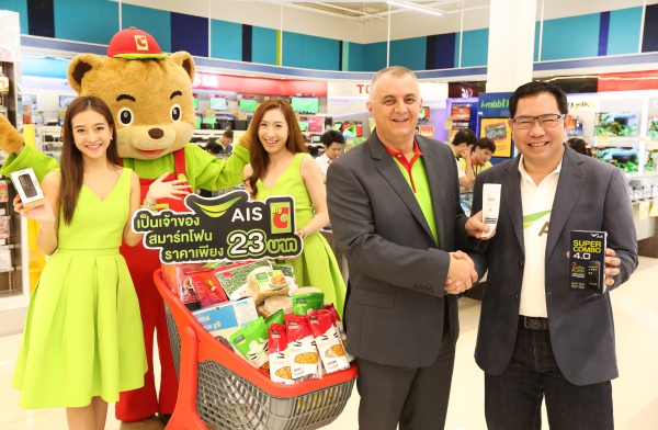 เอไอเอส โดย นายฐิติพงศ์ เขียวไพศาล ผู้ช่วยกรรมการผู้อำนวยการอาวุโส สายงานการตลาด จับมือ บิ๊กซี โดย นายแกรี่ ฮาร์ดี้ ประธานเจ้าหน้าที่ปฏิบัติการ ฝ่ายธุรกิจค้าปลีก ร่วมฉลองครบรอบ 23 ปี บิ๊กซี จัดแคมเปญพิเศษ ตอบแทนลูกค้าขาช็อป ให้รับสิทธิซื้อสมาร์ทโฟน หรือมือถือรุ่นปุ่มกด พร้อมซิมใหม่ เอไอเอส วัน-ทู-คอล! ได้ในราคาพิเศษ เพียง 23 บาท พร้อมรับโบนัสโทรฟรี ง่ายๆ! เพียงแสดงใบเสร็จการซื้อสินค้าที่บิ๊กซี โดยไม่มีขั้นต่ำ และเติมเงินตามกำหนด (รับสิทธิ์ได้ 1 บัตรประชาชน ต่อ 2 สิทธิ์) โดยมีให้เลือก 2 รุ่น ดังนี้