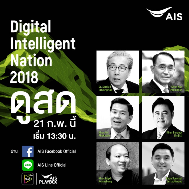 ด้วยเทคโนโลยี IoT ที่จะมาพลิกโฉมการใช้ชีวิตในระดับผู้บริโภค และการทำธุรกิจในระดับอุตสาหกรรม และเศรษฐกิจมหภาค อันส่งผลให้ประเทศก้าวสู่ Thailand 4.0 ได้อย่างเป็นรูปธรรม เอไอเอส ในฐานะ Digital Life Service Provider มีความตั้งใจอย่างยิ่ง และพร้อมที่จะเป็นผู้ร่วมสร้าง IoT Platform เพื่อมอบประโยชน์ให้กับคนไทย จึงจัดงานสัมมนา“Digital Intelligent Nation 2018” เจาะลึกเทคโนโลยี IoT กับการพัฒนาประเทศในทุกภาคส่วน พร้อมจัดแสดงโชว์เคส บริการจาก IoT ที่เกิดขึ้นจริงแล้วอย่างครบถ้วน พร้อมประกาศ ความร่วมมือ IoT ระดับประเทศ ภายใต้ความร่วมมือกับภาครัฐและเอกชน เพื่อเปิดกว้างให้ผู้ที่เกี่ยวข้องกับ IoT ทั้งหมดได้มาร่วมกันสร้างนวัตกรรม IoT ด้วยกัน โดยภายในงาน ได้รับเกียรติจาก รองนายกรัฐมนตรี ดร.สมคิด จาตุศรีพิทักษ์ และผู้บริหารองค์กรชั้นนำของประเทศ อย่าง กลุ่มเซ็นทรัล, เครือโรงพยาบาลกรุงเทพ และศิลปินตัวพ่อ อย่างคุณบอย โกสิยพงษ์ ร่วมปาฐกถาพิเศษเกี่ยวกับวิสัยทัศน์ในการนำดิจิทัลเข้ามายกระดับการบริหารจัดการเพื่อให้ก้าวสู่ไทยแลนด์ 4.0