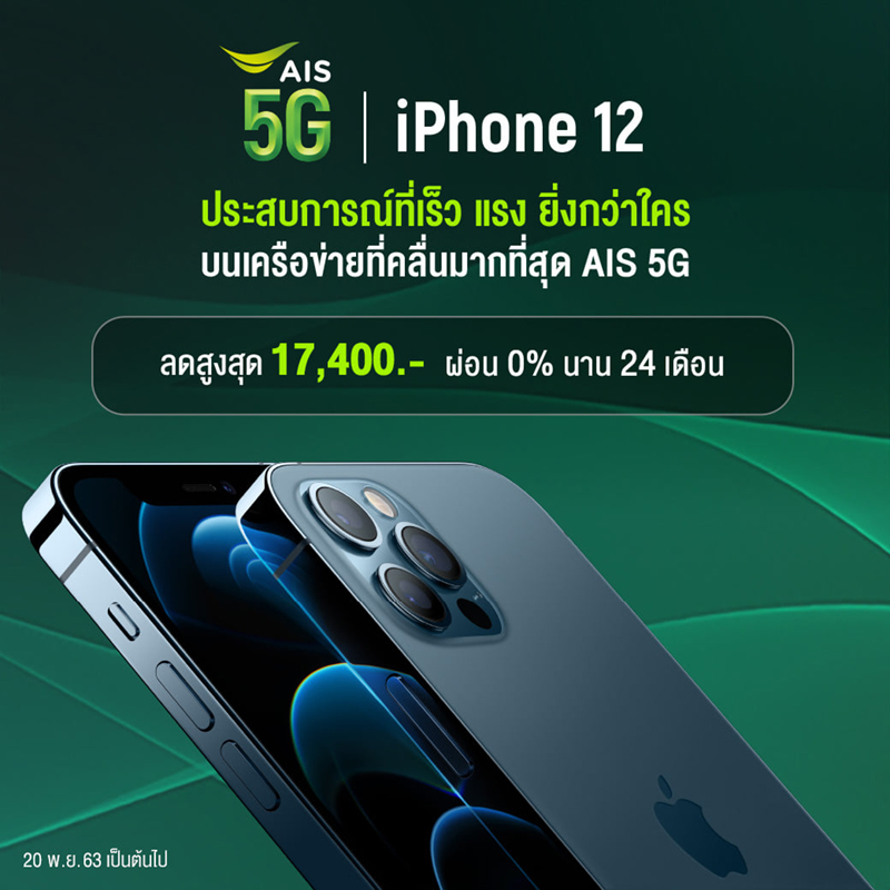 สั่งซื้อล่วงหน้า iPhone 12 Pro และ iPhone 12 Pro Max บนเครือข่ายที่คลื่นมากที่สุด AIS 5G ได้แล้ววันนี้ ราคาดีที่สุด พร้อมรับสิทธิพิเศษอีกมากมาย และพิเศษยึ่งขึ้นรับเครื่องก่อนใคร เวลา 00.01น. เป็นต้นไป ของวันที่ 27 พ.ย. 63 (จำนวนจำกัด)
