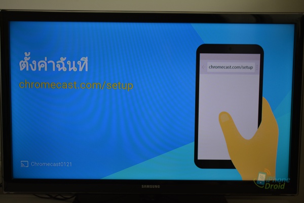 หลังจากที่เปิดขึ้นมาเรียบร้อย ให้เชื่อมต่อสมาร์ทโฟน และ Chromecast อยู่ใน WiFi วงเดียวกัน และสลับอินพุตของ TV ไปที่พอร์ต HDMI ด้วยนะครับ สลับเรียบร้อยแล้วที่หน้าจอทีวีจะให้แนะนำให้ใช้ smartphone เปิด browser เข้าไปที่ chromecast.com/setup เพื่อเข้าไปตั้งค่าการใช้งาน