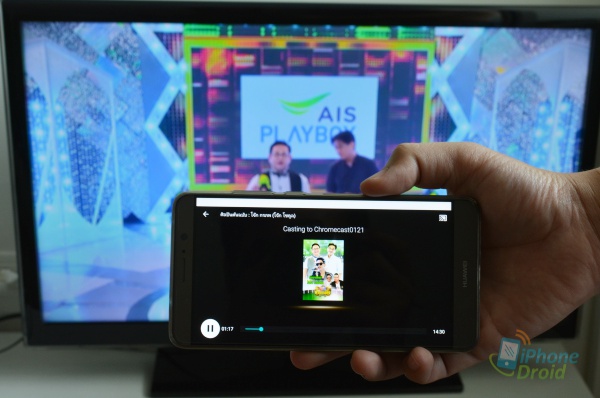 เมื่อตั้งค่าใช้งานเสร็จเรียบร้อยก็พร้อมใช้งานแล้วครับ จากภาพนี้ใช้งานบนแอพ AIS PLAY ซึ่งก็รองรับการแคสต์ขึ้นไปบนทีวีเพื่อรับชมบนทีวีได้เลย แตะไปที่ปุ่ม “แคสต์” เพื่อรับชมบนทีวี