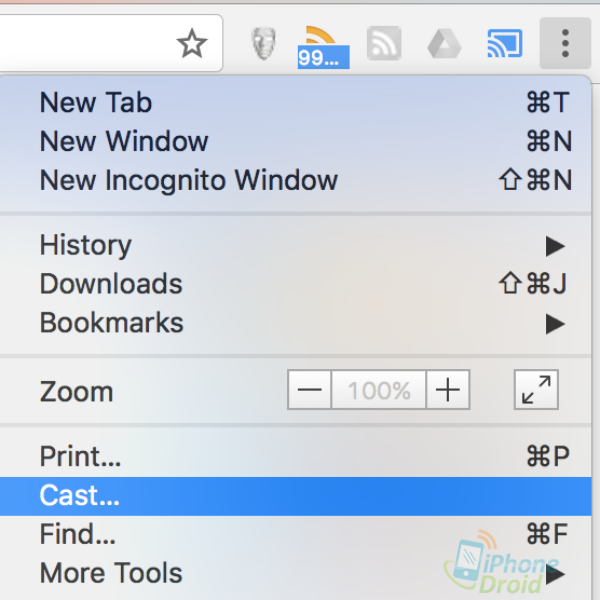 อัปเดท 1 : สามารถแคสต์หน้าจอ browser ขึ้นไปได้ทั้งจอ ถ้าต้องการแคสต์หน้าจอไหนขึ้นไป เปิดหน้าเว็บขึ้นมาแล้วเลือกไปที่ cast เพื่อส่งหน้าจอขึ้นไปที่ทีวีได้ (ตัวอย่างเมนูด้านล่างจาก google chrome)
