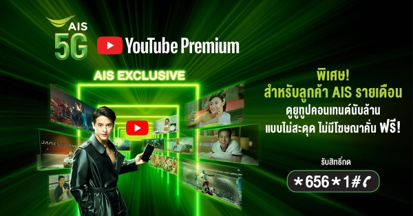 จากสถานการณ์การแพร่ระบาดของโควิด-19 ที่ทำให้ทุกคนต้องเว้นระยะห่างทางสังคม ประกอบกับมาตรการภาครัฐที่รณรงค์ให้ทุกคน “อยู่บ้าน หยุดเชื้อ เพื่อชาติ” ส่งผลให้คนไทยอาศัยอยู่ในบ้านและใช้งานโลกออนไลน์มากขึ้น ด้วยความเข้าใจถึงสถานการณ์และไลฟ์สไตล์ของผู้บริโภคเป็นอย่างดี AIS ผนึกกำลัง YouTube แพลตฟอร์มวิดีโอชั้นนำระดับโลก ประกาศความร่วมมือสุดเอ็กซ์คลูซีฟ เป็นเครือข่ายแรกในเอเชียตะวันออกเฉียงใต้ ร่วมกันส่งความสุขและความห่วงใยให้คนไทย มอบฟรีแพ็กเกจ YouTube Premium สูงสุด 6 เดือน ให้ผู้ใช้บริการเอไอเอสรายเดือน ได้รับชม YouTube แบบไม่มีสะดุด ไม่มีโฆษณาคั่น พร้อมฟังเพลงฟรีจากทั่วโลกกับ YouTube Music applicationเติมเต็มความสุขในช่วงกักตัวอยู่บ้าน