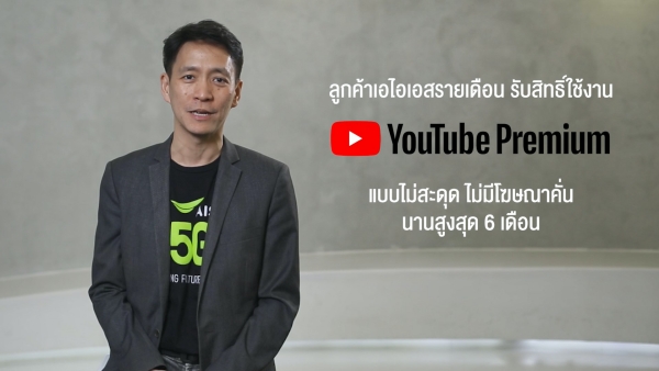 ดังนั้นในสถานการณ์โควิด-19 ที่คนไทยจำเป็นจะต้องกักตัวอยู่ที่บ้านเพื่อป้องกันการติดต่อของโรค เอไอเอส จึงได้ประกาศการเป็นเอ็กซ์คลูซีฟพาร์ทเนอร์อย่างเป็นทางการร่วมกับ YouTube มอบความสุขและความห่วงใยให้คนไทย ผู้ใช้บริการเอไอเอสรายเดือน ได้รับชม YouTube แบบไม่มีสะดุด ไม่มีโฆษณาคั่น พร้อมฟังเพลงฟรีกับ YouTube Music application ฟังจากทั่วโลกผ่าน YouTube Premium ฟรีสูงสุด 6 เดือน ถือเป็นครั้งแรกในเอเชียตะวันออกเฉียงใต้ที่ผู้ให้บริการด้านดิจิทัลไลฟ์ได้ผนึกกับแพลตฟอร์มวิดีโอชั้นนำระดับโลก ส่งมอบความบันเทิงให้คนไทยถึงหน้าจอของท่าน ให้ท่านได้ใช้งานฟรีโดยไม่เสียค่าใช้จ่ายใดๆ เพิ่มเติม เพื่อให้คนไทยกักตัวอยู่บ้านอย่างมีความสุขกับคอนเทนต์ยอดนิยมที่โดนใจคนไทยทั่วประเทศ”