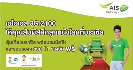 เอไอเอส 3G 2100 คิกออฟแคมเปญ “AIS Let’s Goal Brazil 2014” ให้ลูกค้าดูสดครบทั้ง 64 แมทช์บนมือถือฟรี! เป็นรายแรกและรายเดี