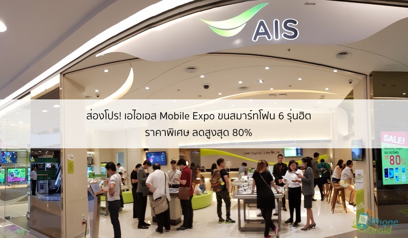 สำหรับใครที่กำลังมองหาสมาร์ทโฟนรุ่นฮิต ห้ามพลาดกันเด็ดขาดครับ เอไอเอส Mobile Expo ขนสมาร์ทโฟนรุ่นฮิตลดสูงสุดถึง 80% ที่เอไอเอส ชอป และเทเลวิซ ทุกสาขาในกรุงเทพฯ และปริมณฑล โดยมีรุ่นเด่นๆ น่าสนใจหลายรุ่นครับ พอดีผ่านไปเจอโปรโมชั่นนี้ที่ช้อปเริ่มเมื่อวานเป็นวันแรก เรียกได้ว่าคึกคักมากครับ และแน่นอนว่าไม่พลาดที่จะเอาโปรโมชั่นนี้มาฝากกัน โดยขอคัด 6 รุ่นฮิต สเปคดี ราคาสุดคุ้ม แต่จะมีรุ่นไหน ราคาเท่าไหร่บ้างไปดูรายละเอียดกันครับ
