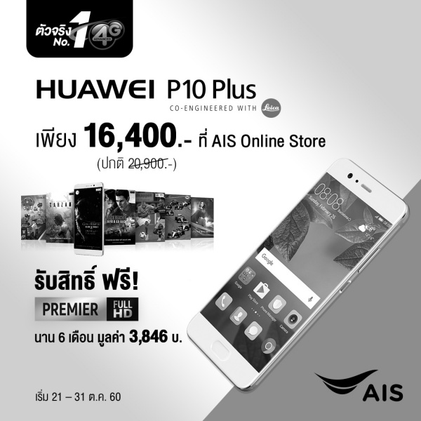 Huawei เครื่องเปล่าราคาพิเศษ สำหรับลูกค้าปัจจุบันระบบ AIS รายเดือน ที่มีแพ็ก 488.- ขึ้นไป ไม่ต้องจ่ายล่วงหน้า ไม่ต้องเปลี่ยนแพ็กเกจ มีผลระหว่างวันที่ 21 ต.ค. – 31 ต.ค. 60 รายละเอียดดังต่อไปนี้