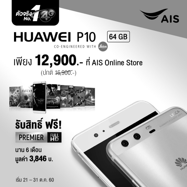 Huawei เครื่องเปล่าราคาพิเศษ สำหรับลูกค้าปัจจุบันระบบ AIS รายเดือน ที่มีแพ็ก 488.- ขึ้นไป ไม่ต้องจ่ายล่วงหน้า ไม่ต้องเปลี่ยนแพ็กเกจ มีผลระหว่างวันที่ 21 ต.ค. – 31 ต.ค. 60 รายละเอียดดังต่อไปนี้