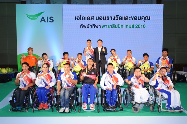 เอไอเอส จัดงานเลี้ยงมอบรางวัลและกำลังใจให้ทัพนักกีฬาพาราลิมปิกไทย รวมกว่า 6.6 ล้านบาท โดยมอบรางวัลให้กับฮีโร่พาราลิมปิกที่ได้รับเหรียญทองเป็นเงินสด 5 แสนบาท เหรียญเงิน 3 แสนบาท และเหรียญทองแดง 2แสนบาท พร้อม Samsung Galaxy View และแพ็กเกจโทรและเล่นเน็ตฟรีเป็นเวลา1 ปี นอกจากนี้ยังมอบโทรศัพท์มือถือเป็นกำลังใจให้คณะนักกีฬาทุกท่านที่ได้มุ่งมั่น ทุ่มเท ทั้งแรงกาย แรงใจ ในการไปแข่งขันกีฬาพาราลิมปิก เกมส์ 2016 ในครั้งนี้ โดยมีศิลปินชื่อดัง “แต้ว-ณฐพร เตมีรักษ์” มาร่วมสร้างสีสันในงานด้วย