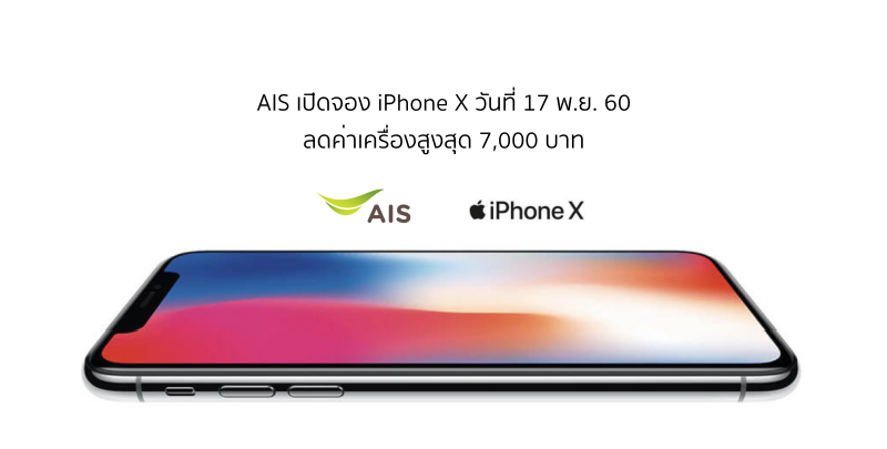 สิ้นสุดการรอคอยกับ iPhone X ที่มาถึงเมืองไทยอย่างเป็นทางการ โดยทาง AIS เปิดให้จองเป็นเจ้าของ iPhone X ได้แบบสะดวกสบาย ไม่ต้องอดนอนรอตอนดึก สามารถจองได้ในช่วงช่วงของวันที่ 17 พ.ย. ตั้งแต่เวลา 9.00น. เป็นต้นไป มั่นใจได้ว่ามีเครื่องให้ลูกค้าจำนวนมาก และยังเปิดให้จองได้ทุกค่ายอีกด้วย