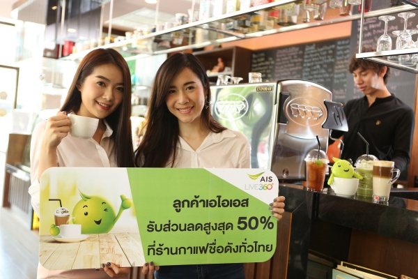 AIS เอาใจคอกาแฟ จับมือร้านกาแฟชื่อดังกว่า 70 ร้าน ทุกภาคทั่วประเทศ อาทิ ร้าน The Barn : Eatery Design จ.เชียงใหม่, ร้าน Light House จ.สุรินทร์, ร้านla Glace จ.สระบุรี, ร้านโกปี๊ เฮี้ยะไถ่กี่ กรุงเทพฯ, ร้าน Coffee Zelection ซ.อารีย์ กรุงเทพฯ, ร้านบ้านสิทธิสังข์ จ.กาญจนบุรี และร้าน CLASSIC 12 จ.สงขลา เป็นต้น เพื่อมอบสิทธิพิเศษส่วนลดสูงสุด 50% สำหรับลูกค้าที่เลือกซื้