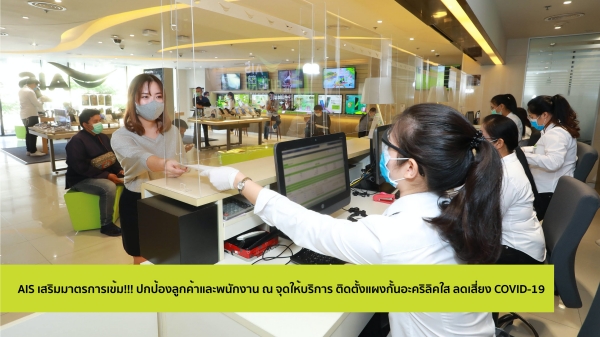เอไอเอส ยกระดับมาตรการดูแลความปลอดภัยลูกค้าและพนักงานไปอีกขั้น ท่ามกลางสถานการณ์การแพร่ระบาดของโรคติดเชื้อไวรัสโคโรนา (COVID-19) พร้อมส่งมอบความห่วงใยกับมาตรการเข้มด้วยการติดตั้งแผงกั้นอะคริลิคใส ณ เคาน์เตอร์บริการ เพื่อปกป้องและเพิ่มระยะห่าง (Social Distancing) ระหว่างลูกค้าที่มารับบริการ ณ จุด Touch Point กับ พนักงาน เพื่อลดความเสี่ยง และสร้างความอุ่นใจให้กับลูกค้าระหว่างทำธุรกรรมต่างๆ ภายใน AIS Shop, Serenade Club และ ร้าน AIS Telewiz