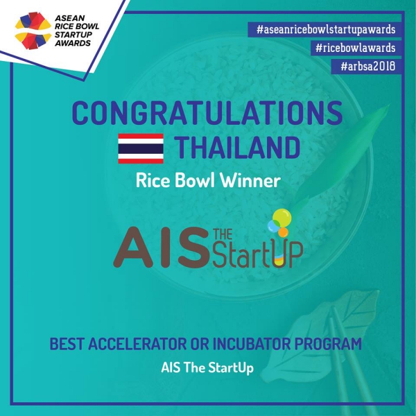 อีกหนึ่งความสำเร็จของโครงการ AIS The StartUp ได้รับรางวัลจาก Rice Bowl Startup Awards (Country Round for National Winner) ในสาขาBest Accelerator or Incubator Program ซึ่งเป็นรางวัลที่มอบให้องค์กรหรือหน่วยงานที่ทำงานร่วมกับ Startup และส่งเสริมให้เกิดการพัฒนาด้านเศรษฐกิจและวัฒนธรรม โดยขอเชิญคนไทยร่วมโหวตและเป็นกำลังใจให้กับโครงการ AIS The StartUp เพื่อเข้าสู่รอบ Regional Round for ASEAN Winner ในงาน ASEAN Rice Bowl Startup Awards ได้ที่ http://m.ais.co.th/1WHnJ7rCO (1 คน / 1 โหวต /1 วัน) ตั้งแต่วันนี้ ถึง 15 พ.ย. 61