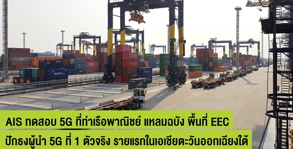 AIS โชว์ทดสอบ 5G ควบคุมเครนยกขนตู้สินค้า ในกิจการท่าเรือพาณิชย์ แหลมฉบัง ใช้งานจริงในอุตสาหกรรมโลจิสติกส์ เขตพื้นที่ EECปักธงผู้นำ 5G ที่ 1 ตัวจริง รายแรกในเอเชียตะวันออกเฉียงใต้